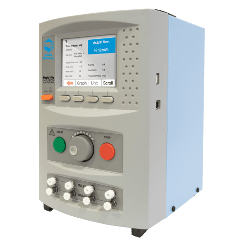 To help save even more time and to reduce the risk of human error, the Multi-Flo can also be programmed with manufacturer specific test routines which can then be automatically executed by the user on the device itself or controlled from a PC using the Med-eBase software solution.