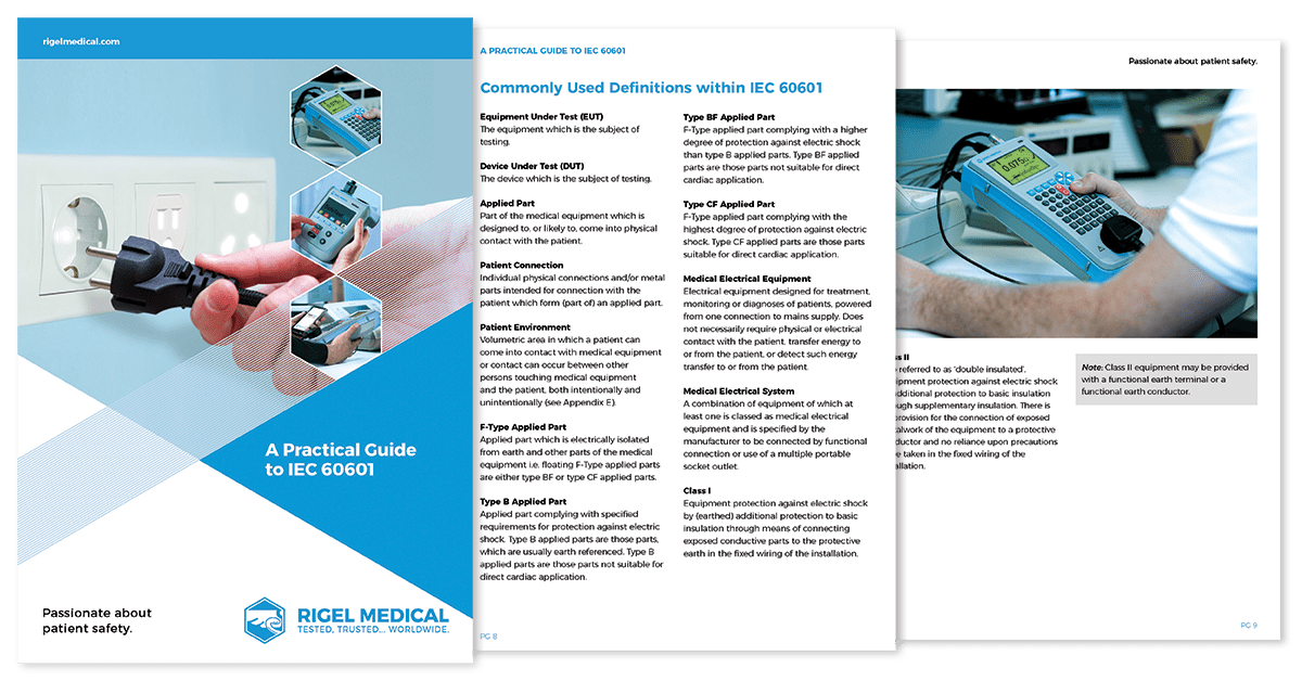 Welcome to Rigel Medical, we’ve been pioneers of biomedical testing and measurement equipment for over 37 years. We have produced our FREE Guide to IEC 60601 as a guideline for people involved in testing medical devices, an important part of keeping people safe.